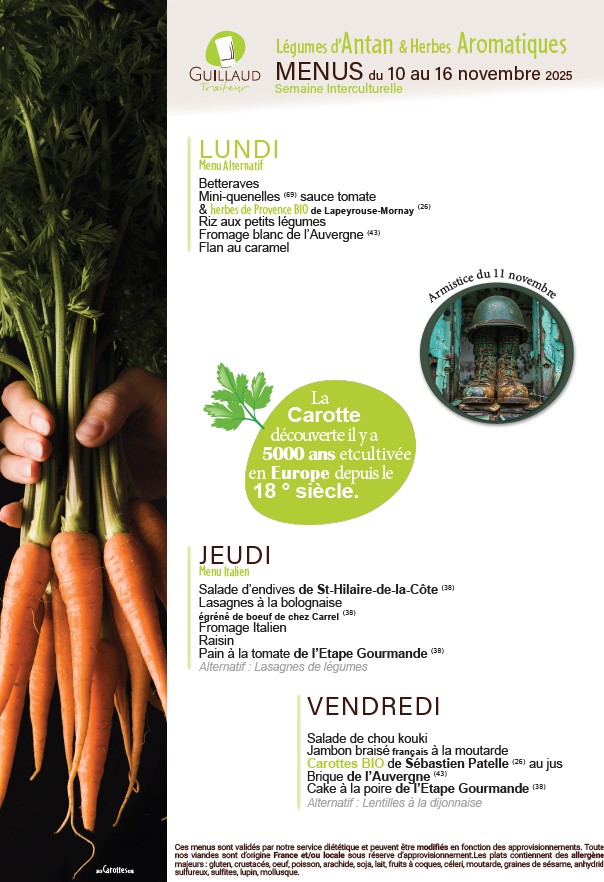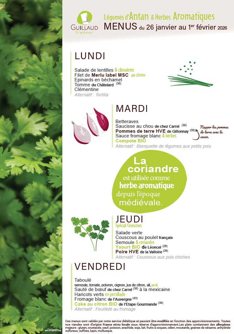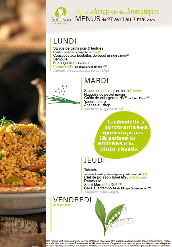 Retrouvez le menu de la semaine dans le restaurant scolaire