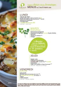 Menus de la semaine du 2 au 6 mars 2026